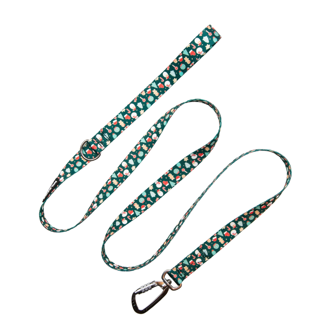 Spread holiday cheer with our Christmas Cookie Dog Leash! Featuring adorable Christmas cookie designs, this leash is the perfect way to celebrate the season. Don't forget to complete the festive look with the matching Christmas Cookie Dog Collar and custom ID tag Available in 6-foot standard, traffic handle for extra control, or hands-free to keep your hands free for holiday shopping and walks. Handmade in Utah with durable materials, this leash adds a sweet touch to your dog's Christmas wardrobe!