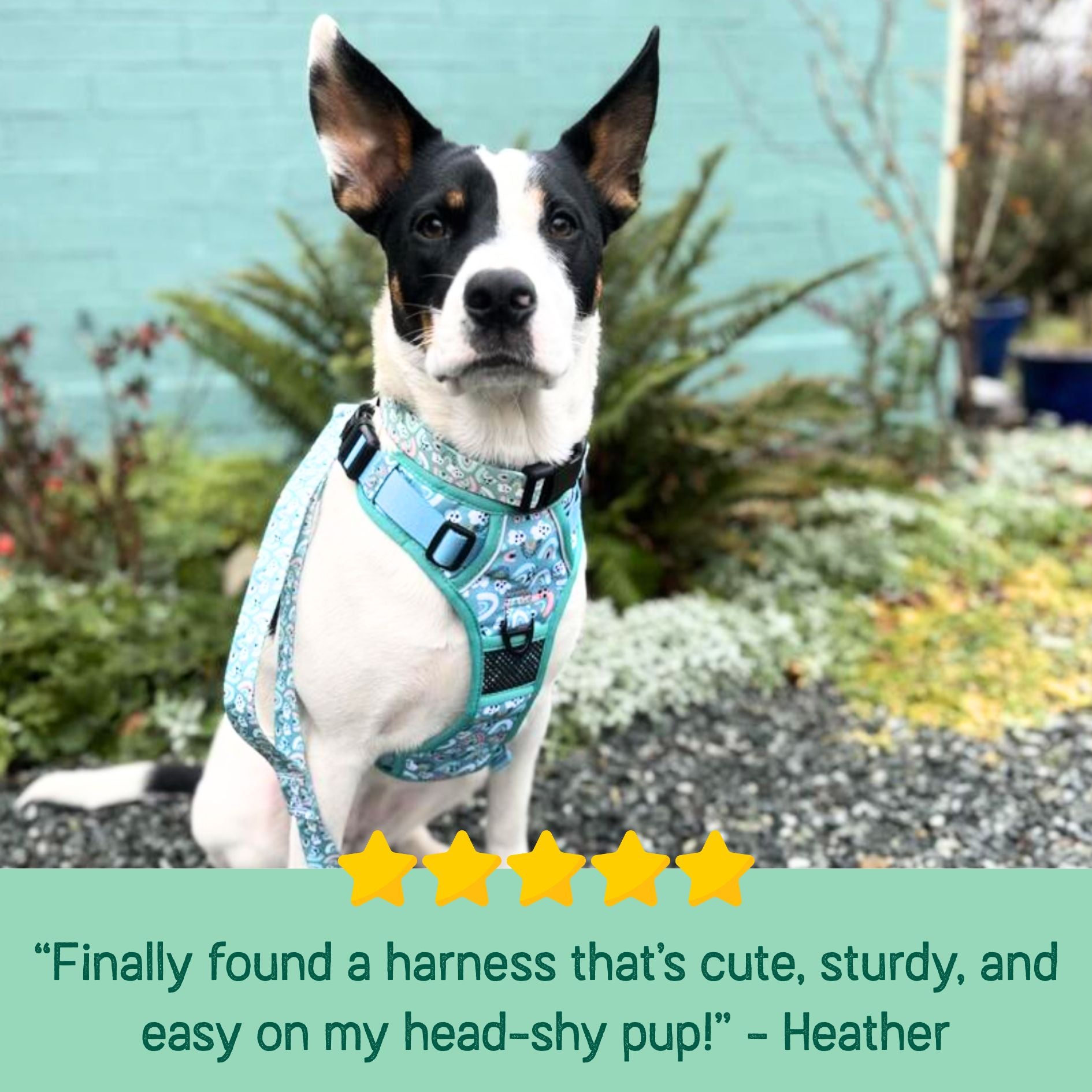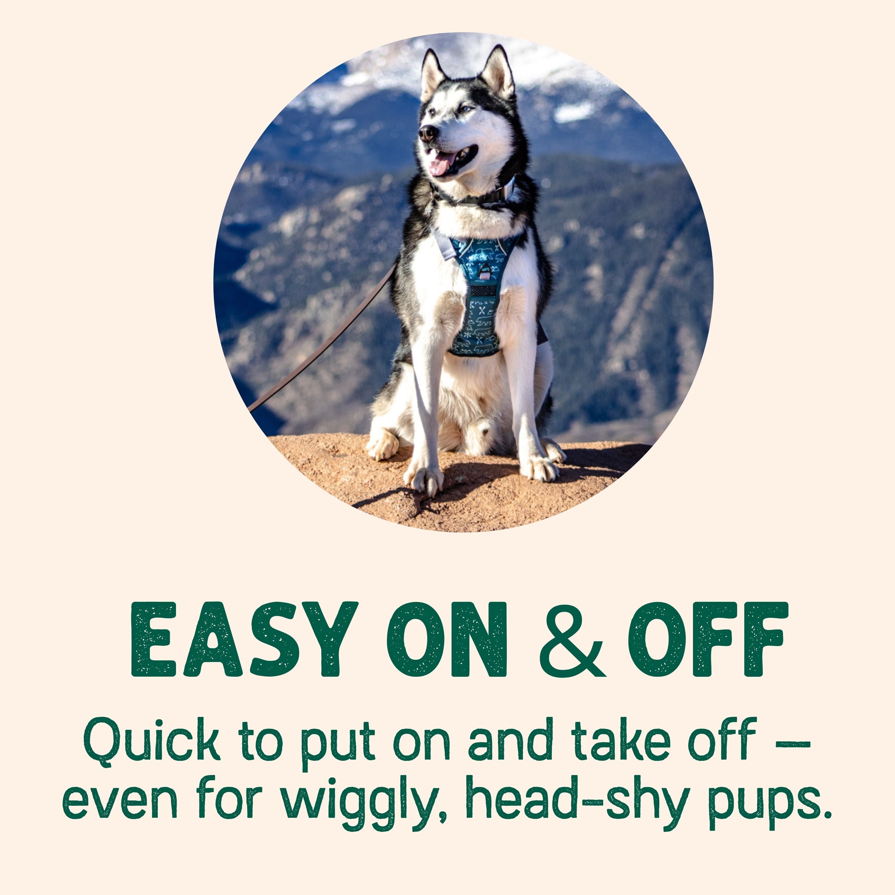 • No Over-Head Design: Step-in style for head-shy or anxious dogs.