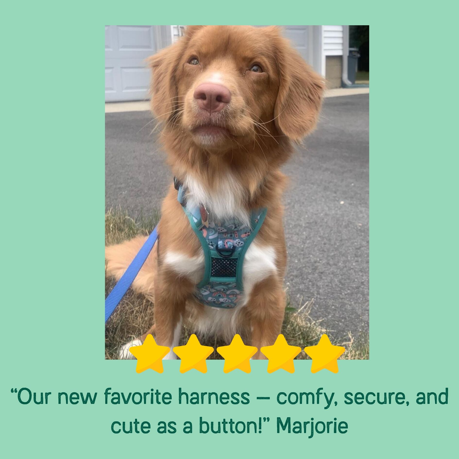 Because your dog goes everywhere with you — their adjustable harness with handle is made to go everywhere too.