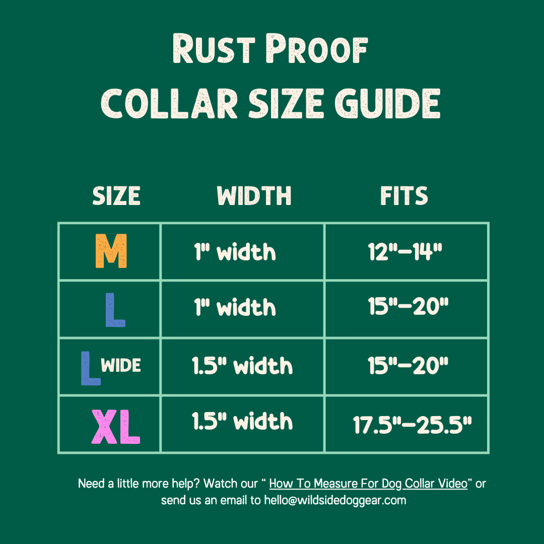 Our collars are crafted from tough, washable materials with rust-proof buckles, designed to last through daily walks, play, and outdoor adventures. Including swimming at the beach so your dog collar hardware will not rust.